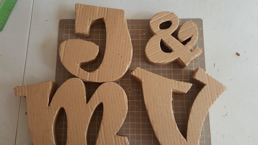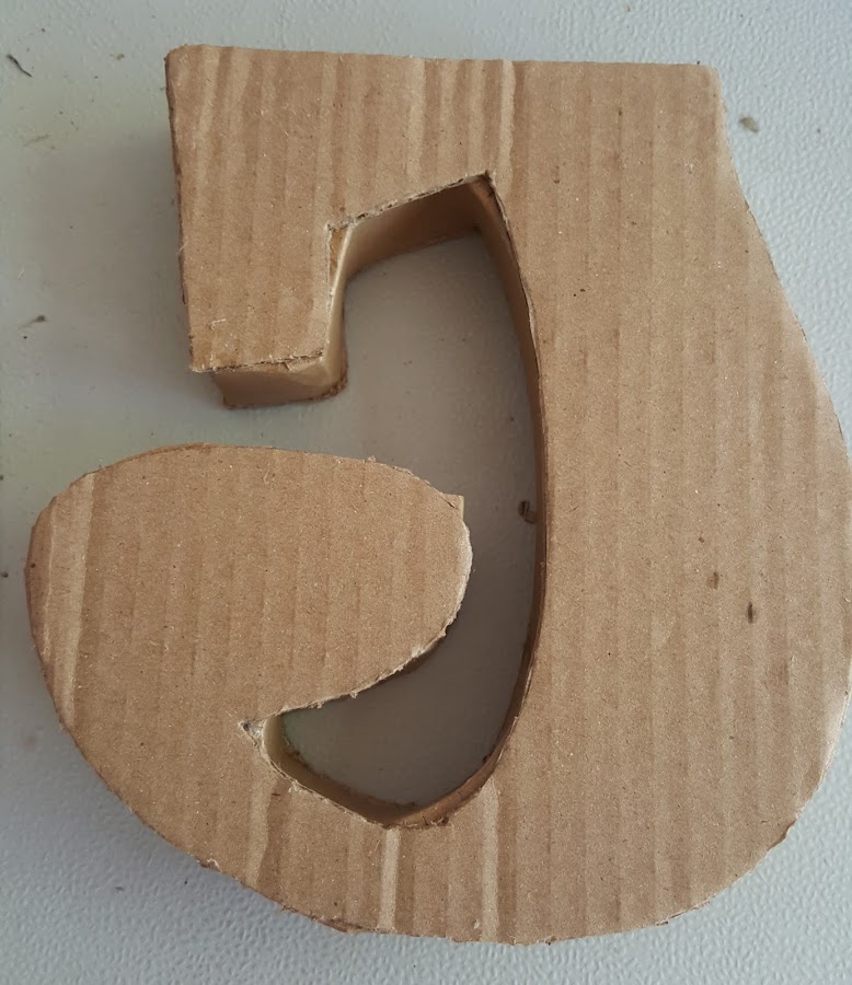 Tomé un cartón de una caja de cartón y las transferí las letras cortando 2 unidades de cada una, tanto para el frente como para la parte posterior
