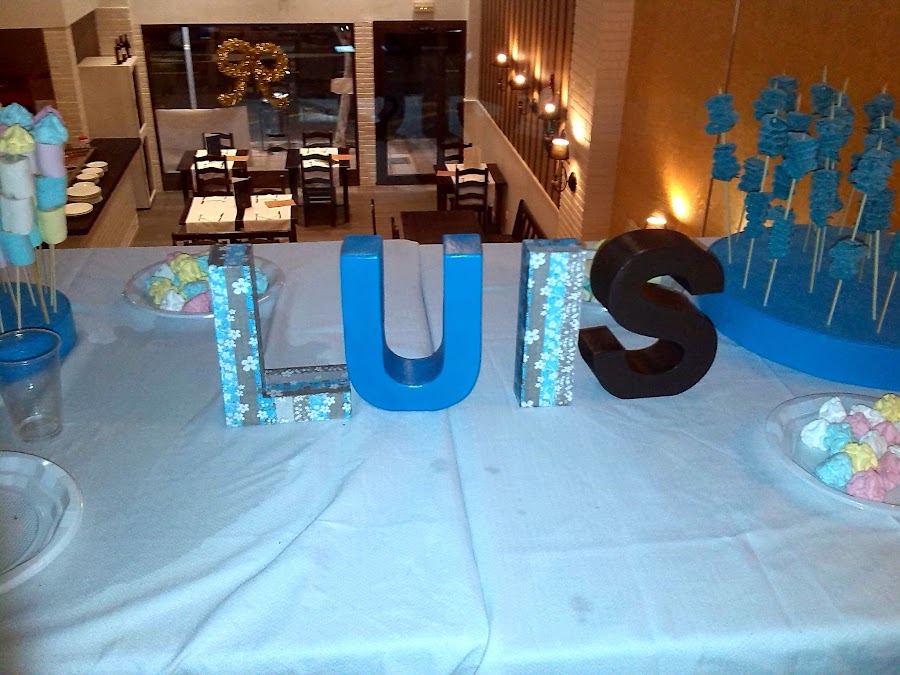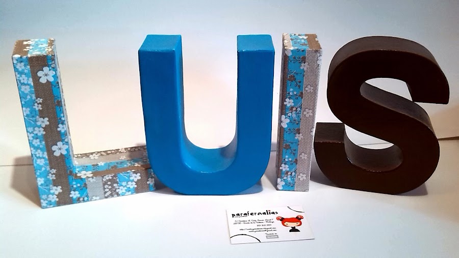 El día 23 era el primer cumpleaños de Luis, el hijo de una amiga y como no podía ser de otra forma, yo quería regalarle algo que fuera original y hecho por mi, así que pensé que las letras para la mesa dulce podrían quedar muy bonitas y luego le servirían para su habitación.