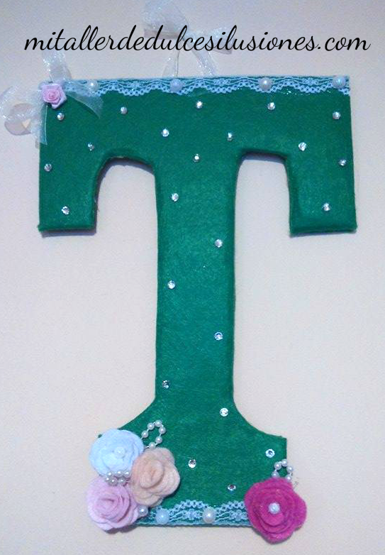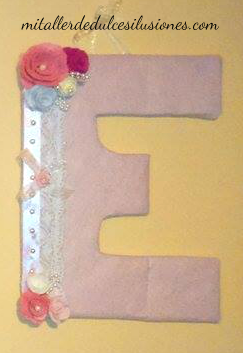 4. Haced lo mismo con todas las letras de vuestra palabra,una vez terminadas llega el momento de decorarlas,yo lo he hecho con rosas hechas de fieltro realizadas por mi ,podéis hacer dos modelos distintos,os dejaré el enlace de como hacerlas