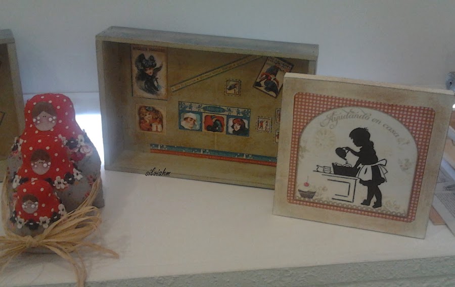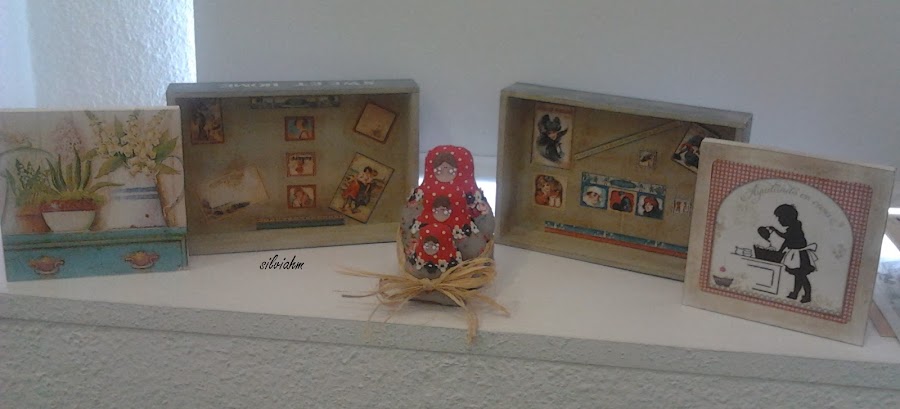 Y esta mañana hemos estado en "Perendengues" haciendo découpage y terminando las matriuskas de la semana pasada.