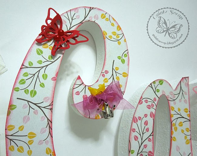 Me gustaría dar las gracias a Yolanda del blog Scraping time... happy time, ya que ha sido mi cómplice; ella ha sido la que me ha facilitado la dirección de Rocío, me ha chivado los colores de la habitación de Candela, etc. y además ha sido la primera que ha visto las letras acabadas y me ha dado su veredicto, jeje! Gracias guapa! :)