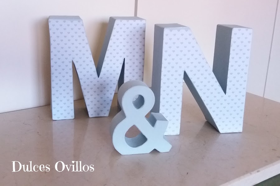 Una vez terminadas las letras, mi siguiente duda era si añadirle una puntilla y lazos o dejarlas tal cual. Después de preguntar al género masculino que todavía anda por casa, ganó la sencillez y así se quedaron, tan mondas y lirondas. Total los ornamentos siempre estoy a tiempo de ponérselos. Creo que mi nuera las prefiere con algún adorno más, así que cualquier día me paso por su casa y les pegamos alguna cosita. Prometo enseñártelo.