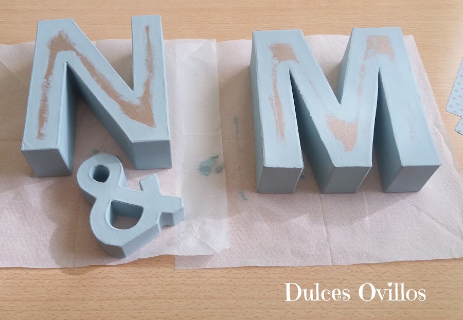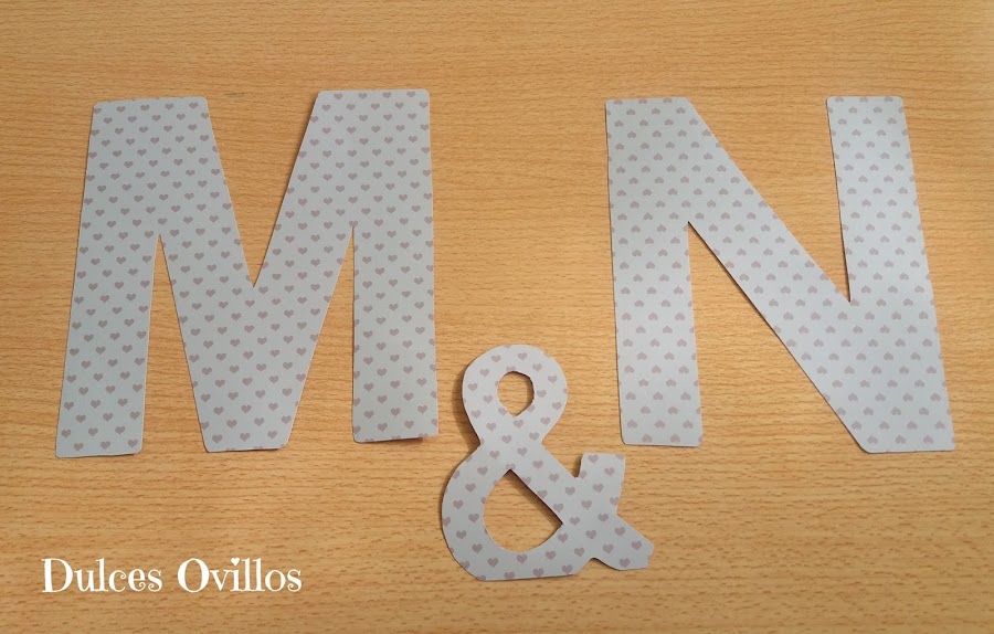 Por delante no hacía falta pintarlas al completo pues iba el papel decorado. El ampersand al ser pequeñito lo pinté del todo y así se quedó, sin papel. Tanto corazón me mareaba.