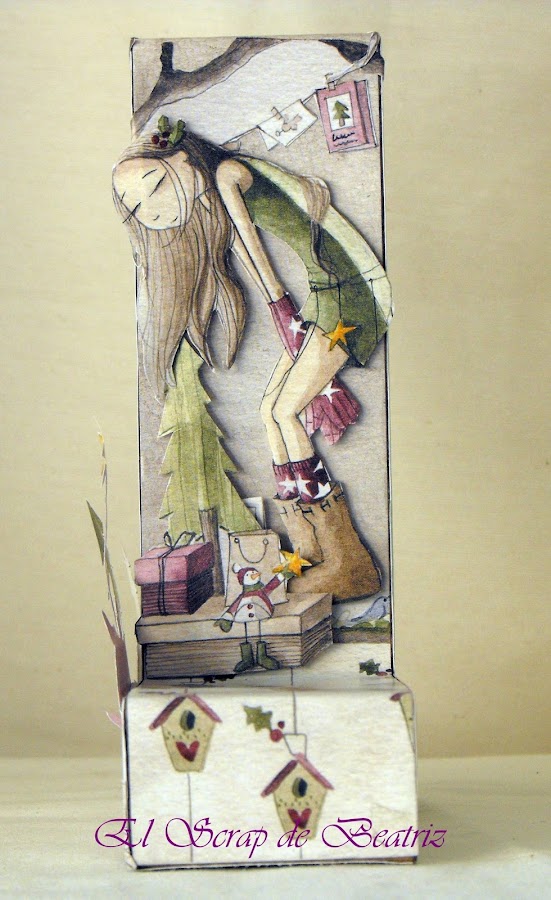 Aqui he echo exastamente igual, he recortado la muñeca y los regalitos y los he pegado con foam.