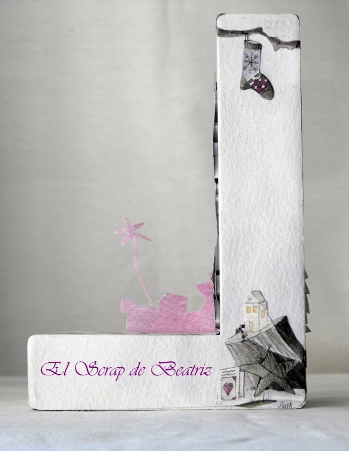 La letra la marque en el papel y una vez recorta la pegue, el arbol y Dicciembre los recorte aparte y tambien estan pegados, el aarbol pequeño de navidad el muñeco de nieve y el carrito estan pegados foan de doble cara para que sobresalgan.