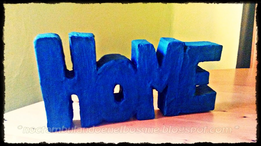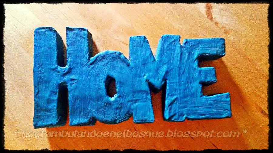 Hoy os traigo algo que hice algún tiempo aprovechando lo que se han puesto de moda las letras decorativas. Están a la venta en muchas tiendas de hogar y decoración, por unidades sueltas o formando palabras determinadas. Pero si queréis personalizar el mensaje y no conformaros con las que vienen dadas, nada mejor que hacerlas uno mismo. Yo opté por la palabra "HOME", ya que la intención era colocarla en el recibidor, y me pareció buena idea que lo primero que viera al entrar fuera la palabra "hogar" para darme la bienvenida.