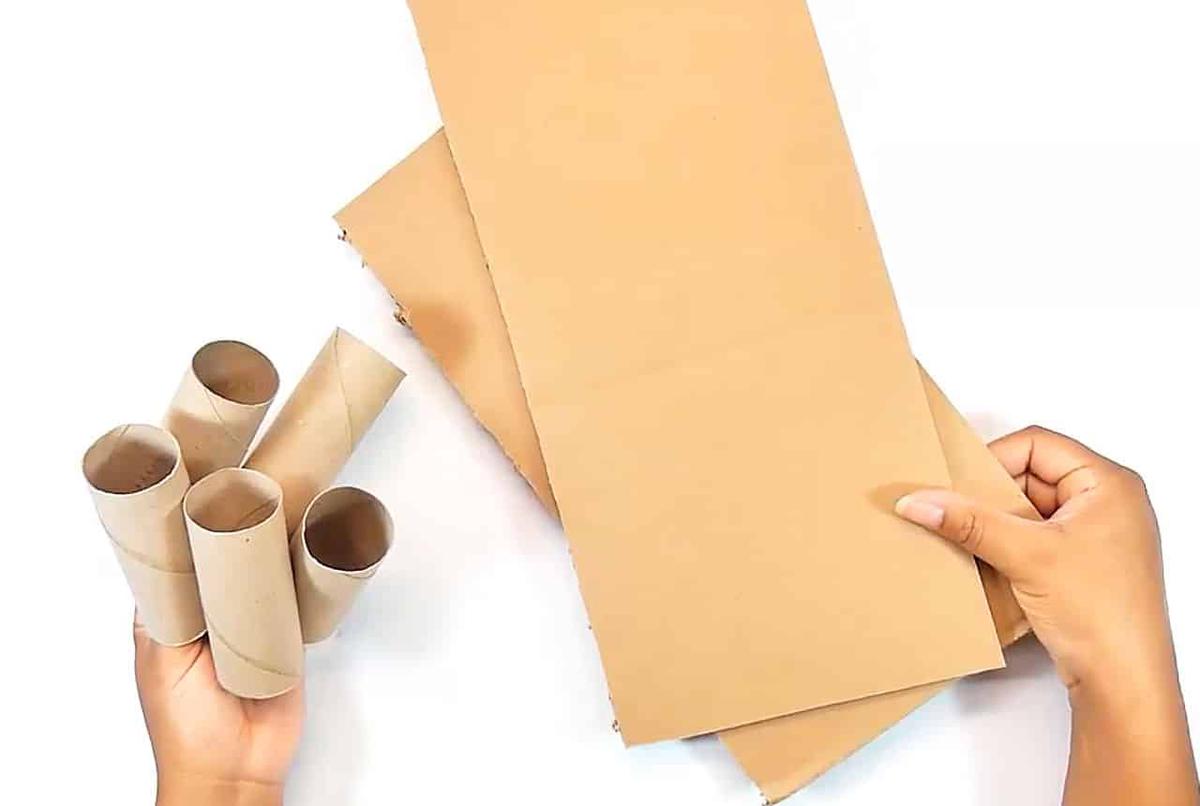 Lo primero es seleccionar tubos de cartón y trozos de cajas de cartón que tengan visible en la parte más larga de la pieza.