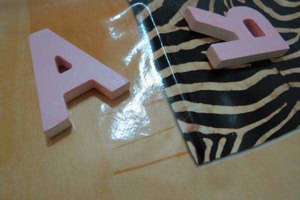 En este caso las letras eran unas pequeñas letras de madera blancas y un tanto sosas, así que con unas manitas de pintura el resultado fue este.