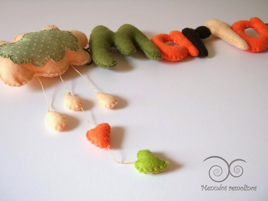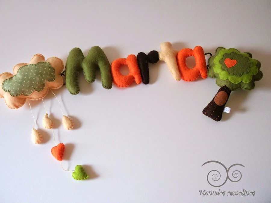 Hoy le toca el turno al nombre de Marta. Letras de fieltro realizadas en tonos otoñales, y que ya hemos visto en otros diseños para niño, aunque también quedan chulísimas para una nena.