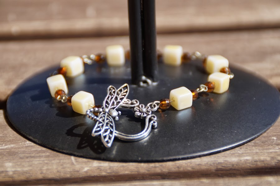 Si soy honesta más que nada los hice porque estaba deseando utilizar el cierre libélula, que me parece precioso!! y además tenía los abalorios cuadrados desde hacía mucho tiempo y aun no los había utilizado, así que... decidí combinarlo todo.