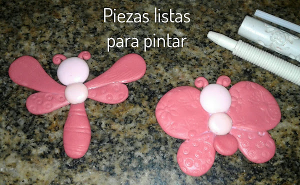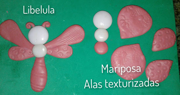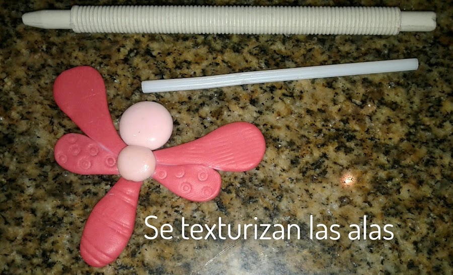 5.- La alas de la mariposa se modelan a partir de bolas de porcelana fría, y se texturizan con rodillo y con pitillos plásticos del café.