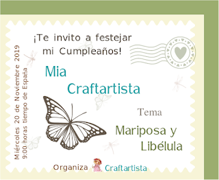 Las Mariposa para Mía y la Libélula para Isabel. Un hermoso día, donde a pesar de las distancias, el idioma y diferencias culturales, nos une el cariño de la amistad que ha surgido del tiempo de compartir una pasión que nos une, como es lo "hecho a mano". En esta Quedad Sorpresa para Isabel y Fiesta Virtual para Mía, celebramos la vida, el tiempo, los años que han trascurrido y los que nos faltan por recorrer. Felicitaciones queridas: Isabel de Alromasar y Mía de Craftartista, nuestro Homenaje es para Ustedes.