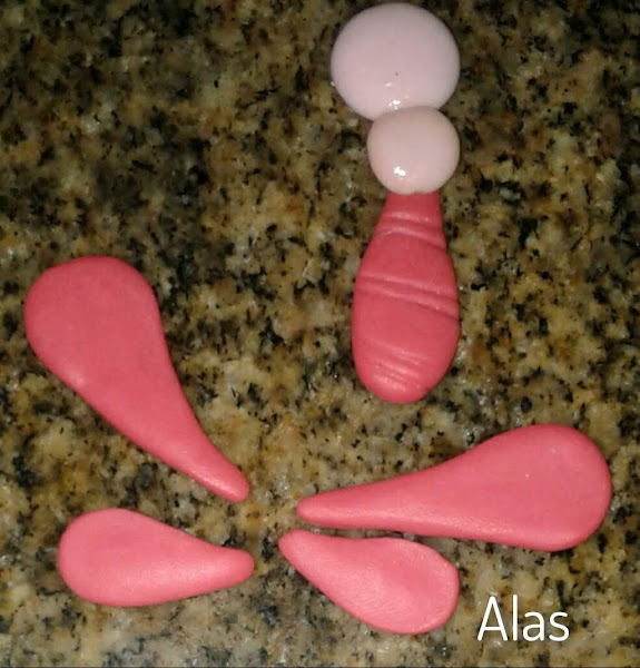 2.- A partir de una bola de masa, se realizan las alas, modelando una forma de gota alargada, en dos tamaños diferentes.