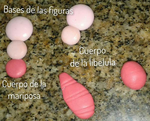 1.- Tanto para la mariposa como para la libélula, las bases iniciales son: dos formas redondas y planas, y constituyen la cabeza e inicio del cuerpo.