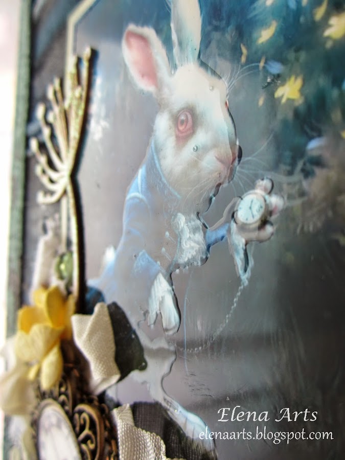 una libreta-diario que la he llamado "Alice"s Garden" con el protagonista este conejito tan adorable. La imagen fue buscada en internet e impresa. Me he inspirado en la libreta felina de Natalya, es una maravilla de trabajo!