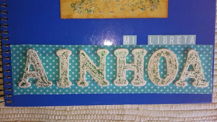 Ainhoa, la mejor amiga de mi hija Rosa, se compró una libreta azul para el colegio, y yo me ofrecí a decorársela y personalizarla con su nombre para que fuera más bonita.