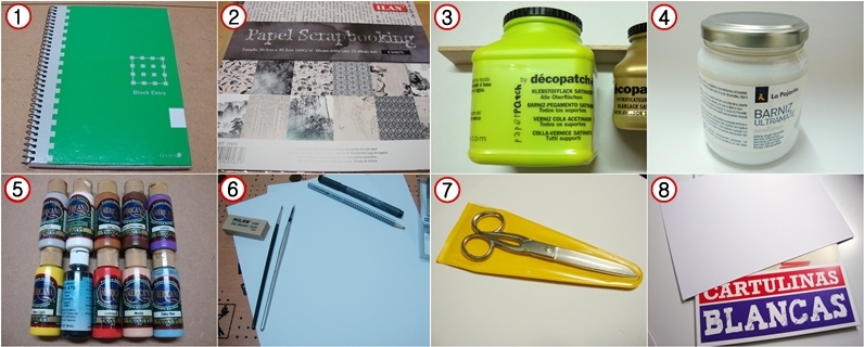 Paso 1. Escoger los papeles y recortarlos a medida. El primer paso será escoger los papeles que queramos para decorar la libreta y recortarlos a medida de la parte exterior de la portada y la contraportada, teniendo en cuenta de dejar un margen de 1,5 cm aproximadamente en todos los lados menos en el que ira dónde hay la espiral de la libreta para poder doblarlos y pegarlos por l parte interior.