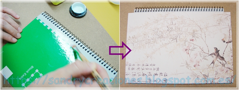 Se van elevando las temperaturas y no sabemos si también os pasa pero a nosotros nos disminuyen las ganas de hacer cosas demasiado laboriosas y en verano vamos más a por lo práctico. Por eso hoy os traemos una manualidad muy fácil y práctica para hacer en estos días: una libreta decorada con decoupage con motivos orientales.