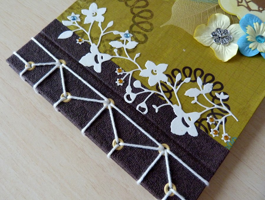 El borde adornado con algún cristalito a tono con las flores y el papel es de Memory Box, Catalina Border.