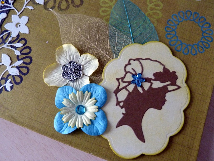 El troquel de la señora es de Marianne Desing y está pegado sobre un scallop de Spellbinders con almohadillas 3D para darle volumen.