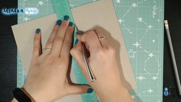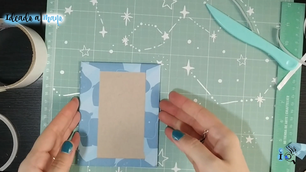 Luego corto dos rectángulos de cartón contracolado de 2mm más que las medidas del papel. Para cortarlos vale con un cutter o cuchilla bien afilado, pasandolo con firmeza varias veces.