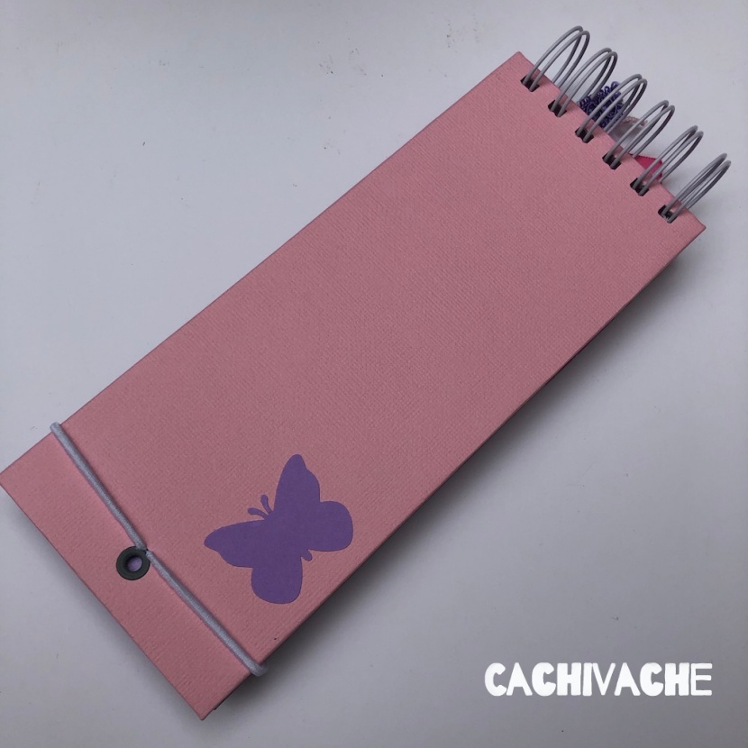 Se trata de una libreta de tamaño 21X8 cm. Encuadernada con muelle y con una goma como cierre...