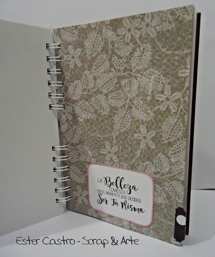 y di detalles con sellos, frases, cortantes e imagen para decorar la tapa.