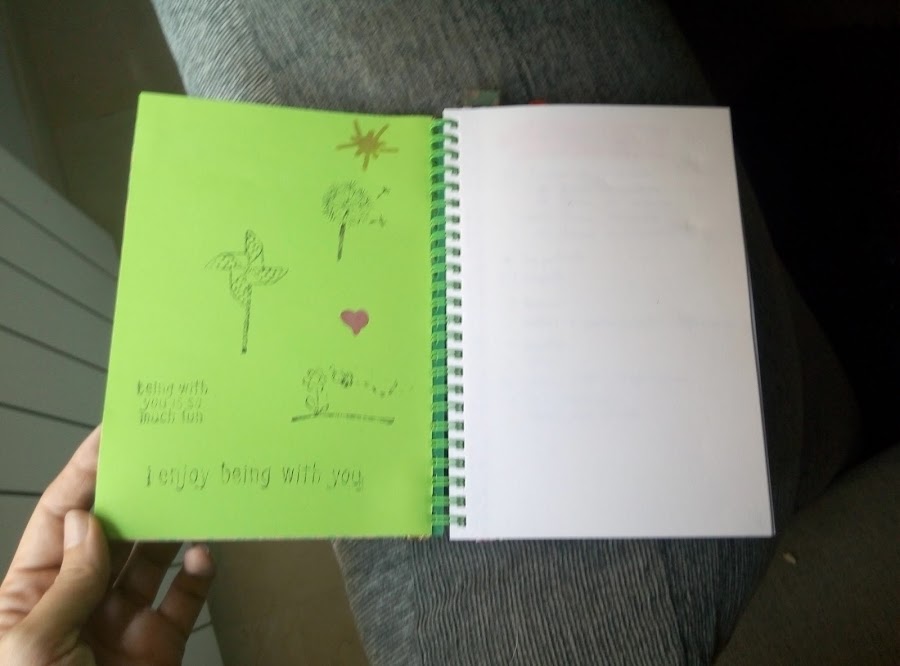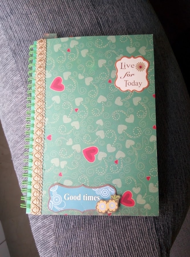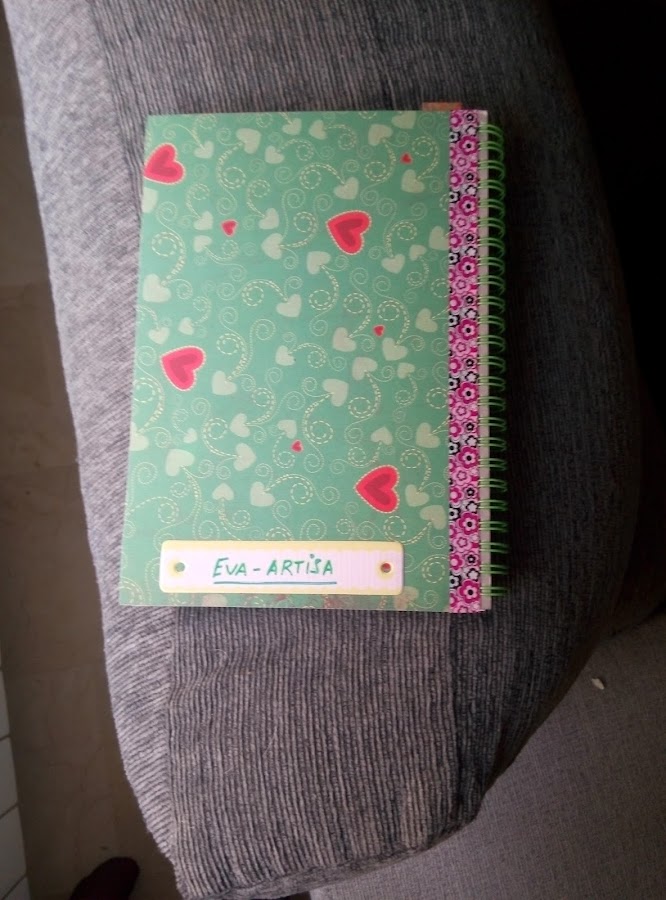 Así quedó la libreta después de gastar la creatividad, esta es la parte delantera