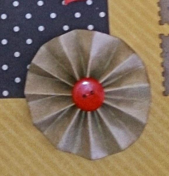 He decorado la portada con una flor realizada a mano con un papel de la misma colección y unos corazones rojos de madera que combinan con el rojo del botón que corona la flor.