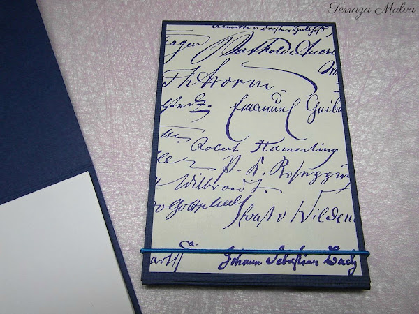 En la portada no quería ningún adorno que se pudiese deteriorar al llevar a diario en el bolso, así que sólo he utilizado el papel "Firme" de la casa Tassotti con estampación de firmas de personajes famosos.