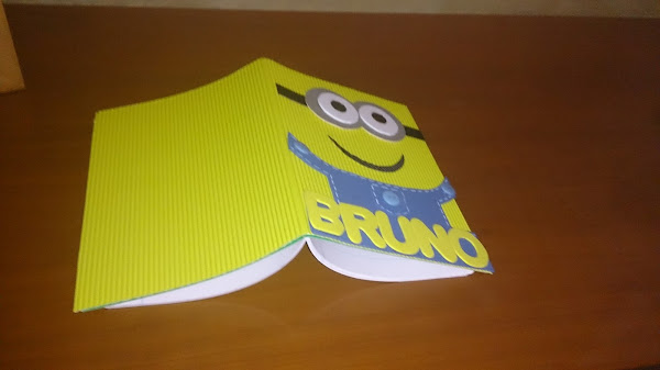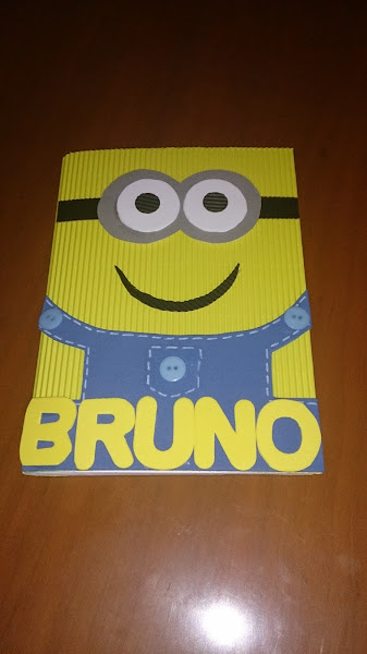 Ahora que están de moda los Minions por el último estreno cinematográfico, pensé en intentar reproducir uno de estos bichos extraterrestres sobre la portada de una libreta para ver que tal me quedaba. Y funcionó, copiando los colores y formas pude dedicarle, de un modo especial, una libreta estándar a Bruno como sorpresa por su reciente cumpleaños. Palabras textuales de Bruno al preguntarle que le había parecido la libreta: "Una pasada".