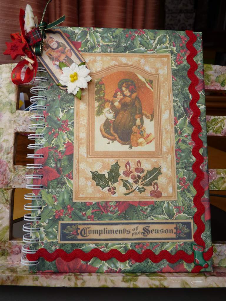 El primero de ellos es una sencilla libreta navideña. Quería hacerme alguna con estos motivos para apuntar en ella cosas relacionadas con estas fechas. Y como voy a participar en un taller para hacer centros de mesa navideños, pensé que era el momento.