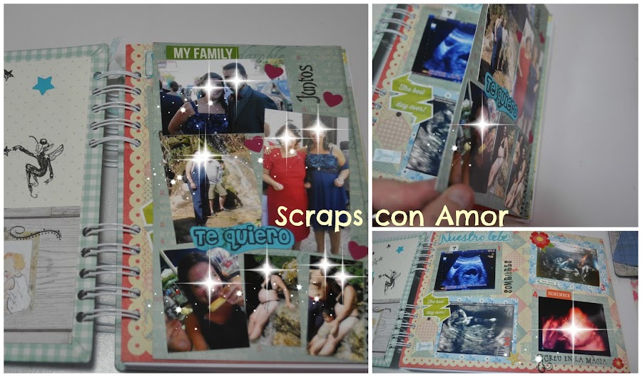 En esta ocasión me pidieron que complementara la libreta con un pequeño collage de fotos de la familia con la chica embarazada.