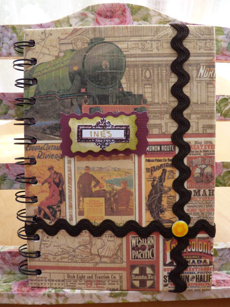 La libreta está comprada en una tienda de chinos, y las imágenes son de la web. Están imprimidas en papel de 160 grs para que tenga cuerpo suficiente. Y el resto es cuestión de añadir cositas que le vayan, al gusto de cada cual.