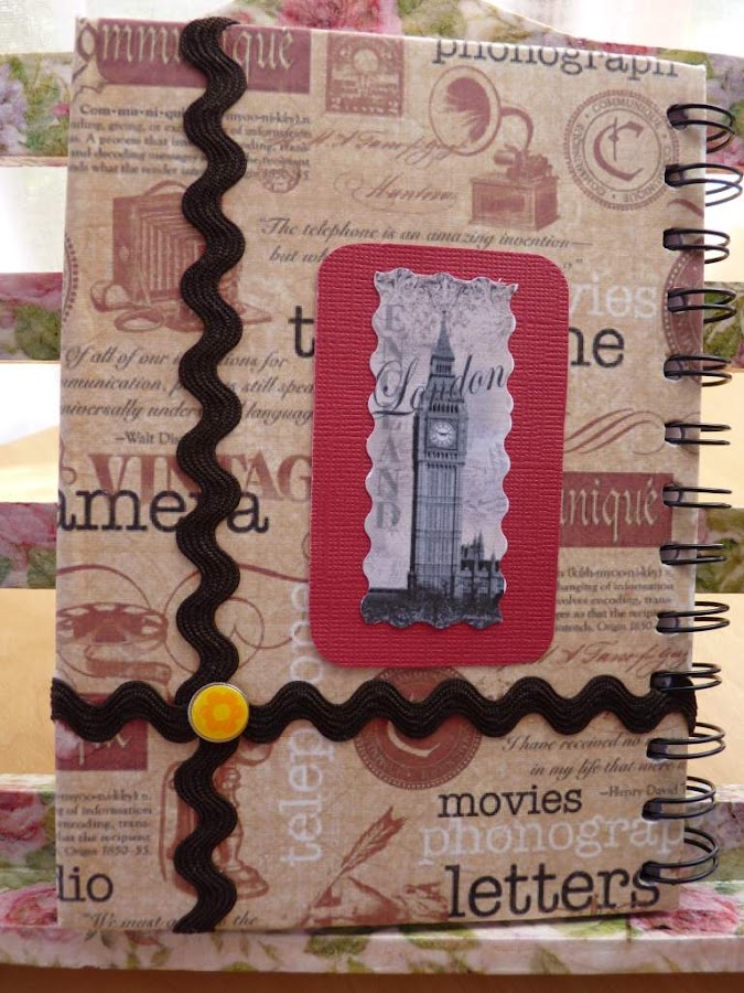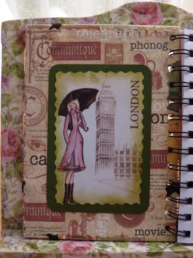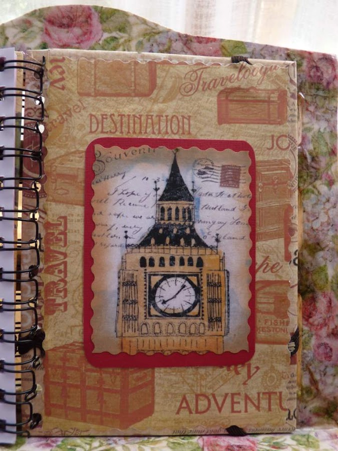 Poco a poco iré poniendo las cosas que he hecho durante este tiempo. Y hoy empezaré por una libreta que he hecho para mi hija, que este verano viaja por primera vez a Inglaterra. Ella quería un cuaderno para apuntar todo lo que viva mientras está allí. Y como ya he hecho algunas como ésta, le preparé una libreta con imágenes muy "british". Sólo le falta la reina de Inglaterra tomando el té.