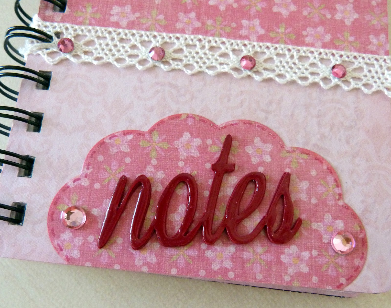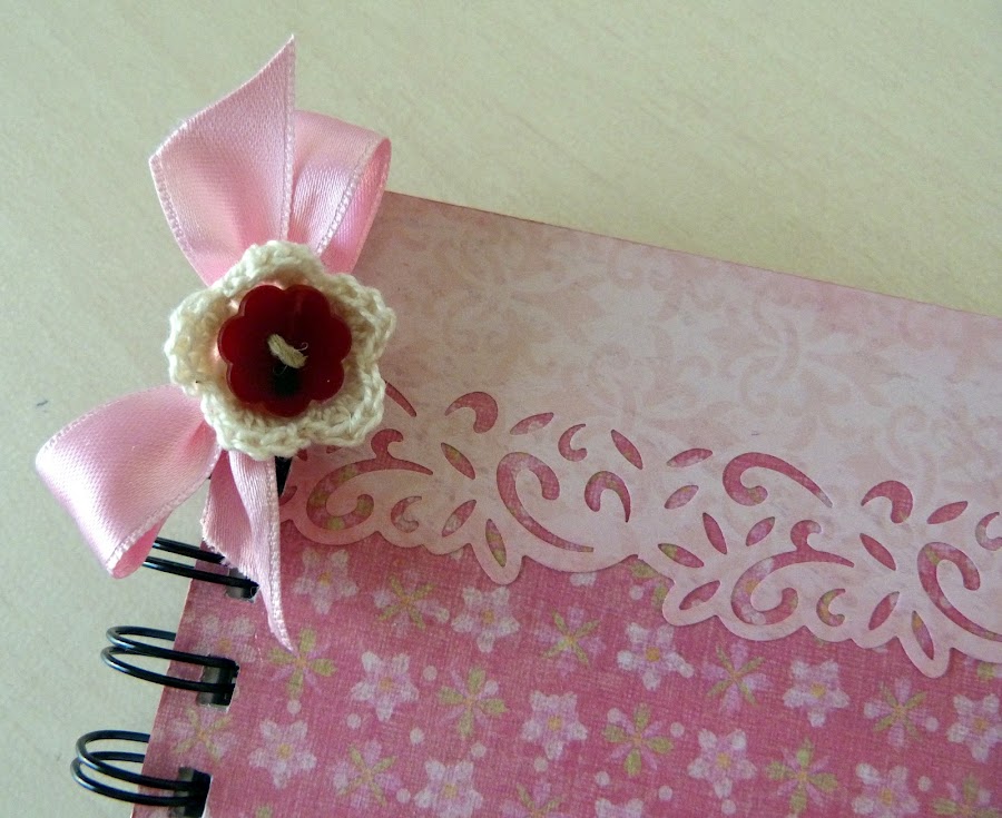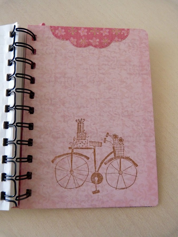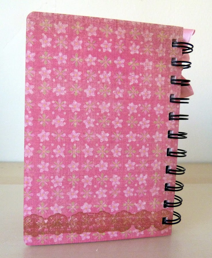La libretita es made in Chinatow a la que saque las anillas para poderla forrar mejor. Los papeles son del famoso taco de K&C en tonos rosas.
