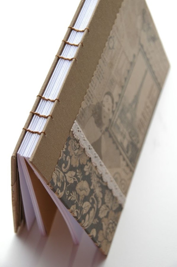 En la entrada anterior os mostrábamos un sello que habíamos aplicado a nuestros jabones, y que había sido un regalo de Omar. Para correponder a su amabilidad, esta es una mini libreta (15,50x11,50 cm) que hemos realizado para él. Con cosido copto (que por cierto, tengo que mejorar un poco la técnica), y una portada con una lámina al que se le ha dado un aspecto semi-envejecido. martayconchi ...