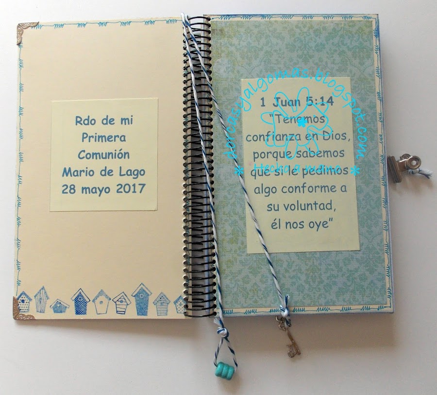 Hoy os traigo una libreta-diario para Mario como regalo de su 1ª Comunión. Es una libreta para que él pueda apuntar sus cosas y leer versículos de la Biblia.