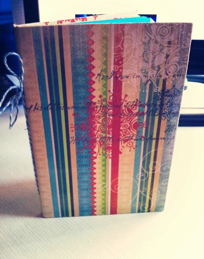 Libreta hecha con restos de libretas y una caja de cereales, el tutorial Aqui