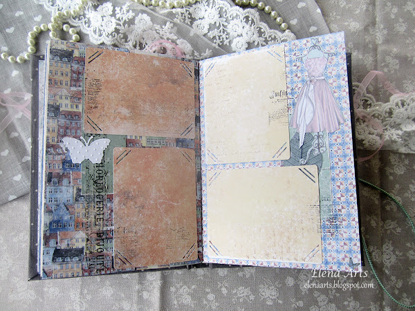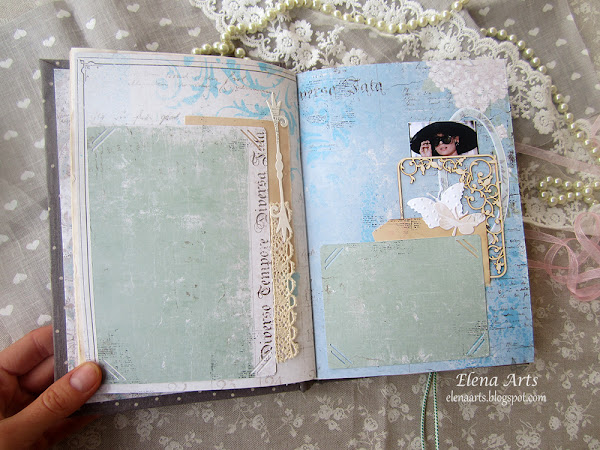 I have not published other projects than layouts or cards for a long time:)) Today I want to show you one of the last orders I had recently. I was asked to create a notebook and mini album in one. It had to be functional to take a notes but at the same time must save some pictures.