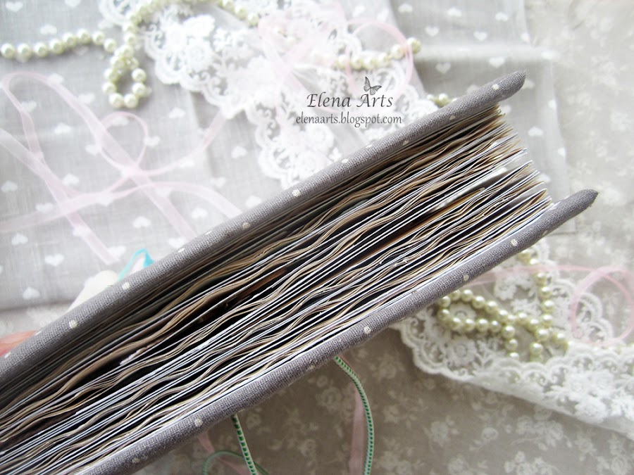 Inside there are 48 sheets (96 pages) dipped in coffee and 18 sheets (36 pages) decorated for a photos, I also left a few sheets unadorned.