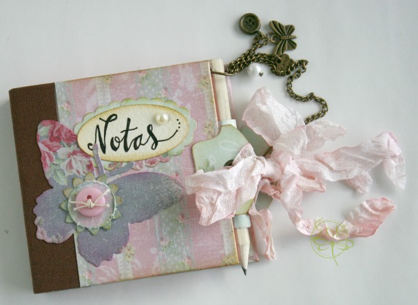 Esta es una libretica que he hecho para tener en mi auto, para anotaciones rápidas, a veces es una cita, una dirección, algo que debo comprar y no debo olvidar... Por eso esta hecha con "post its" es decir estos papelitos autoadheribles que se pueden quitar sin problemas.