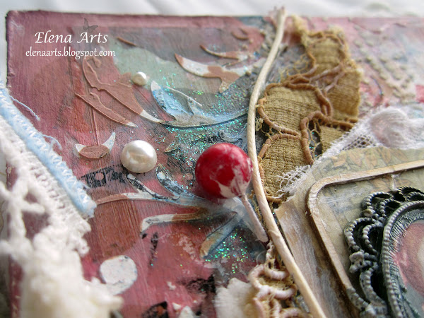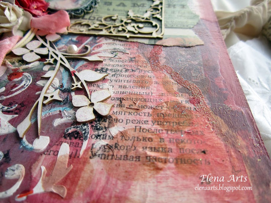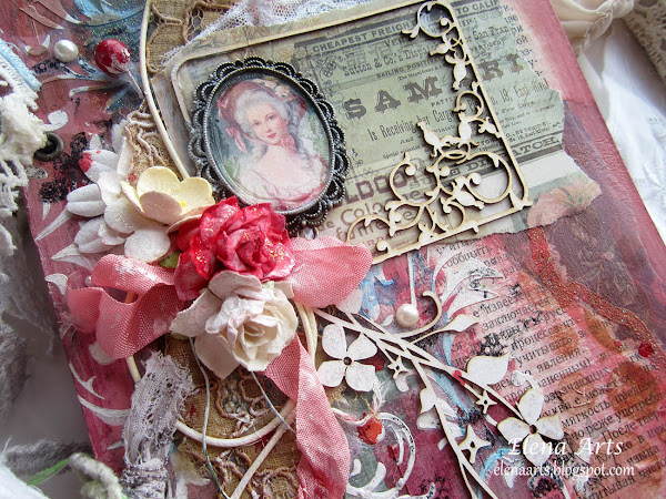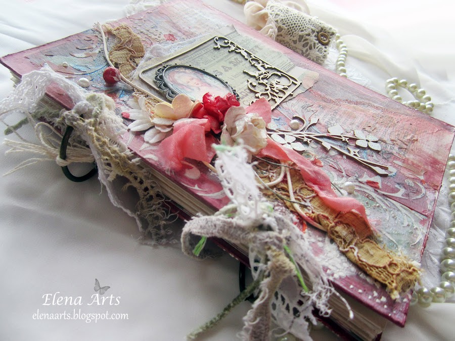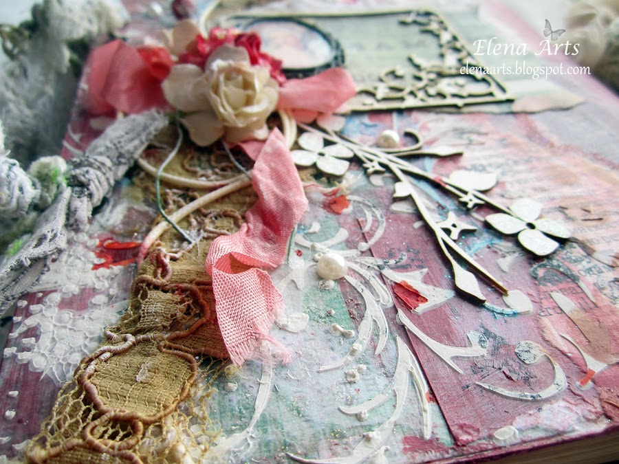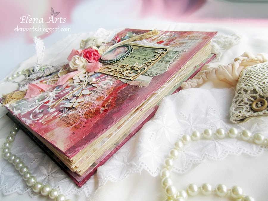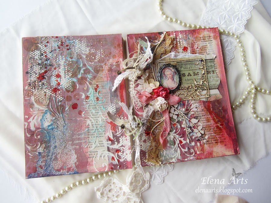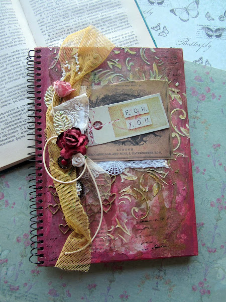 Mi libreta salió al estilo Vintage en tonalidades rojas. Mucho encaje y flores, textura, mucha textura en todo!!!! Me encanta!!!