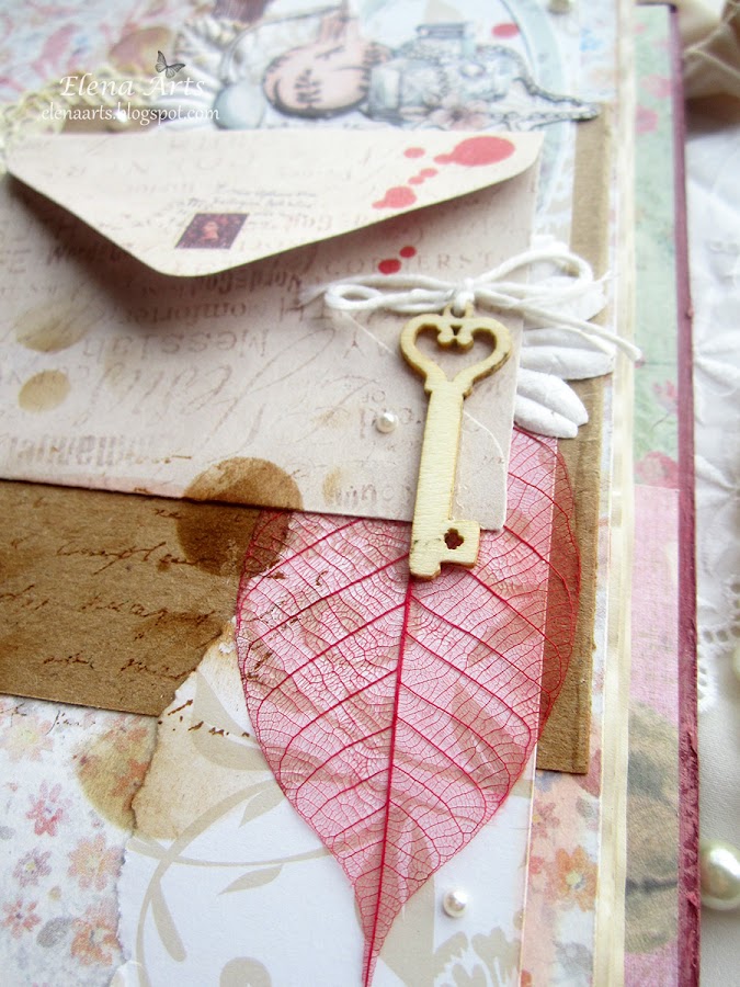Los papeles de dentro son envejecidos, todos teñidos en café. Podéis ver mi tutorial de cómo hacerlo AQUÍ.