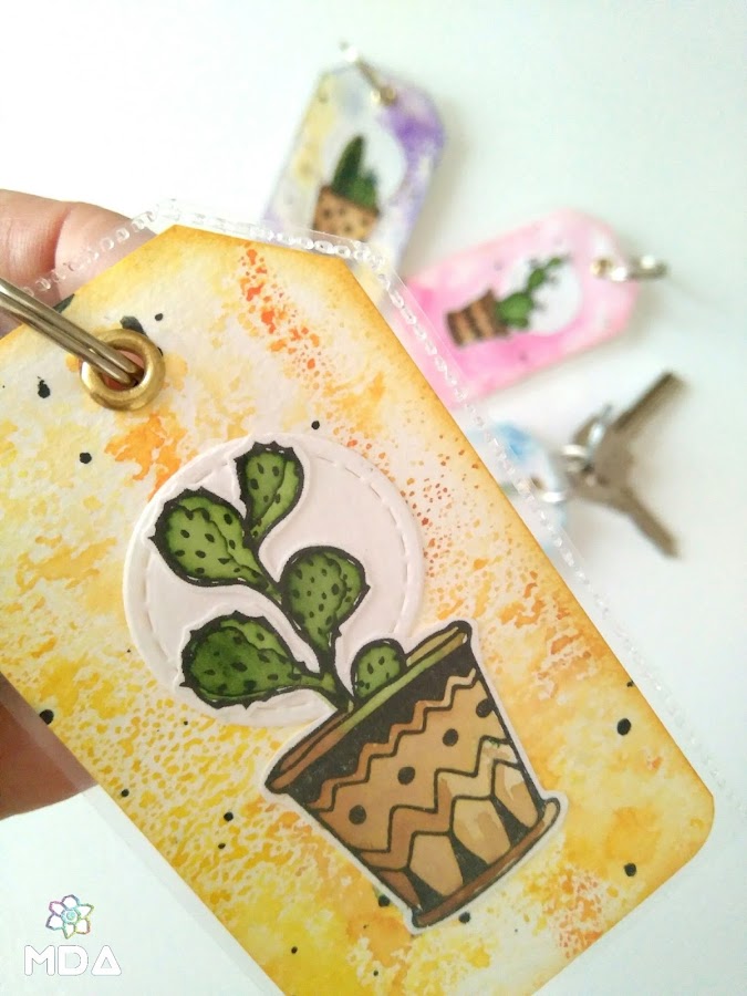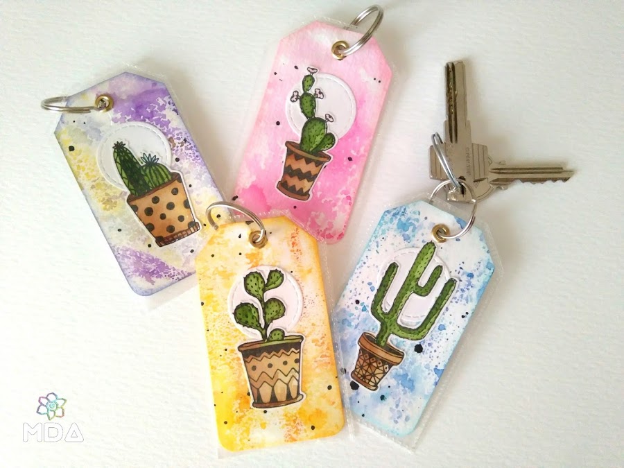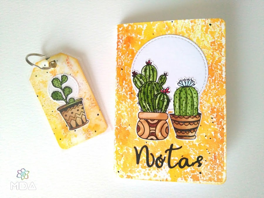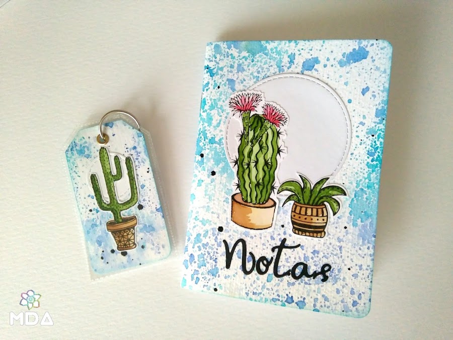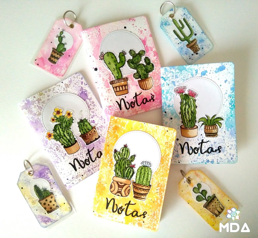 La segunda técnica la he usado para pintar los cactus como si fuera con acuarelas. Las imágenes las puedes estampar, imprimir o dibujar pero utiliza siempre tinta resistente al agua.