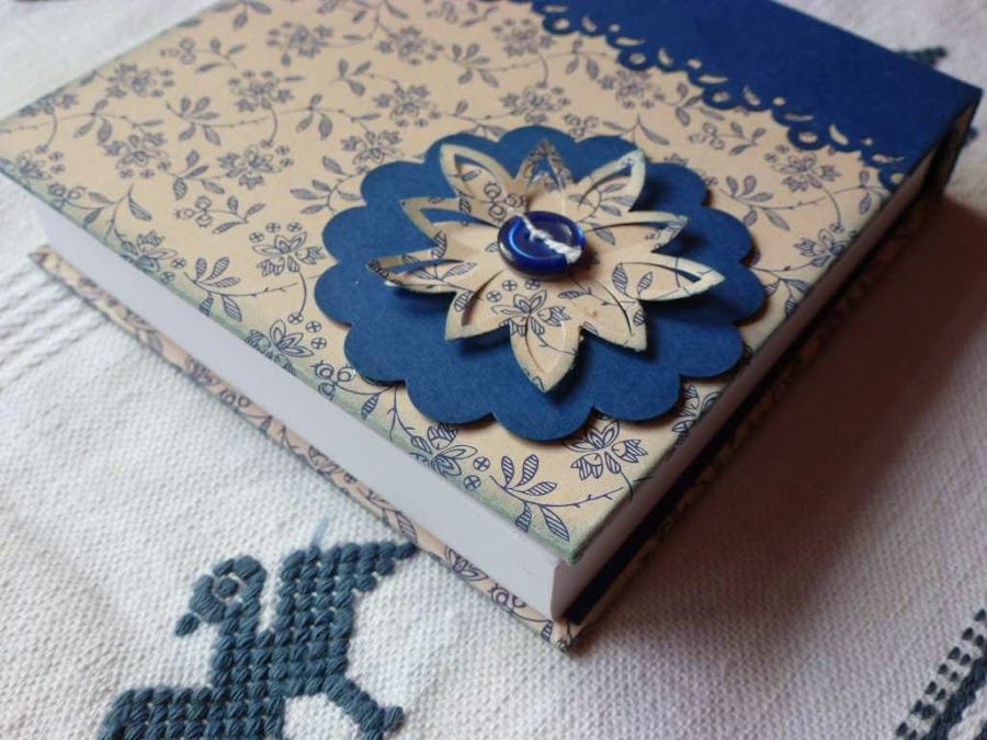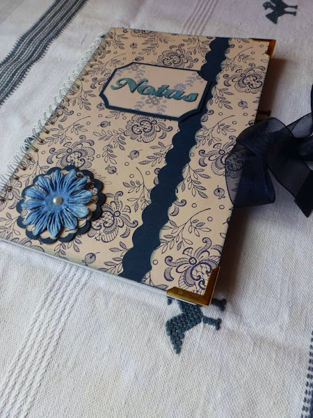 Y tras esta no breve introducción, os quiero enseñar los modelos de libretas que hice para el último taller. Son dos: Una alterada, es decir, hecha a partir de una comprada, y un taco de notas al que le "fabricamos" unas tapas para vestirlo más elegante.