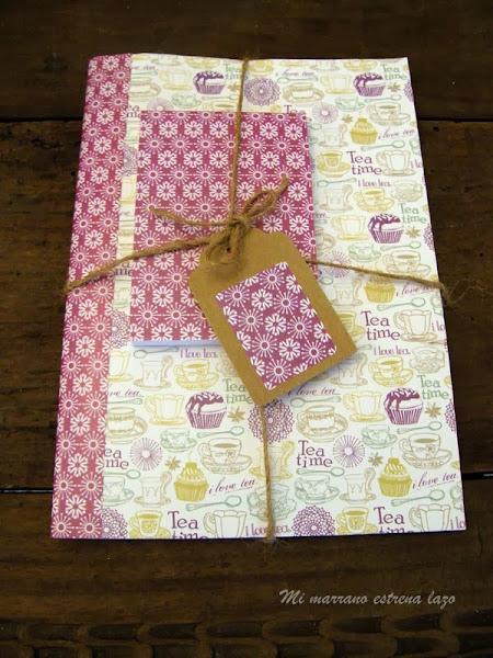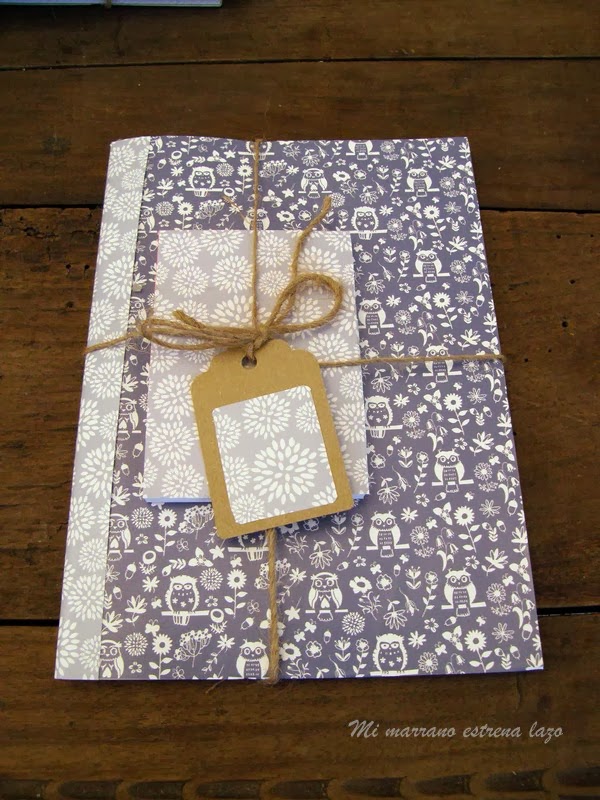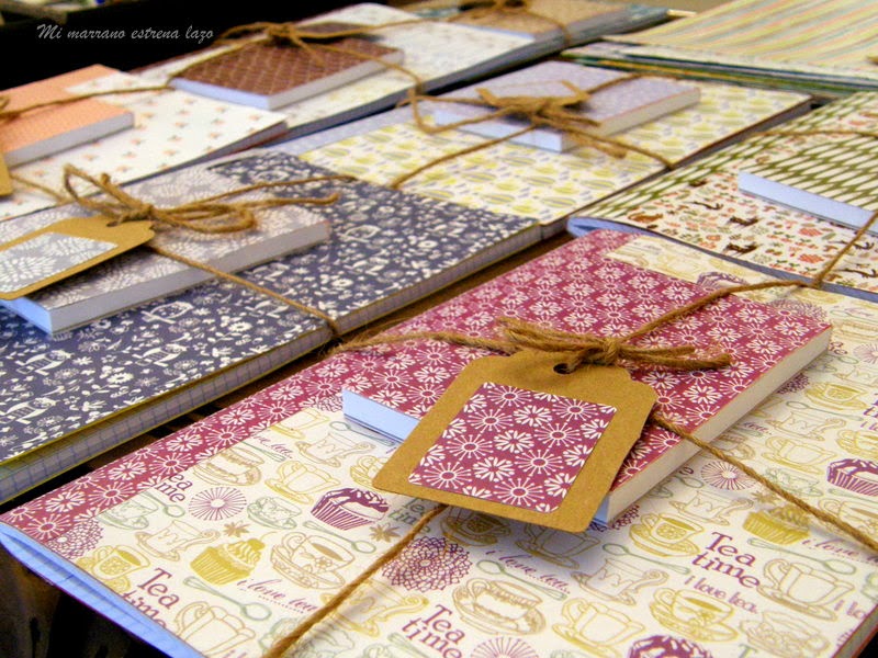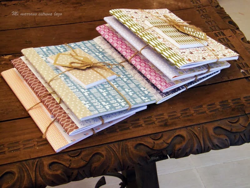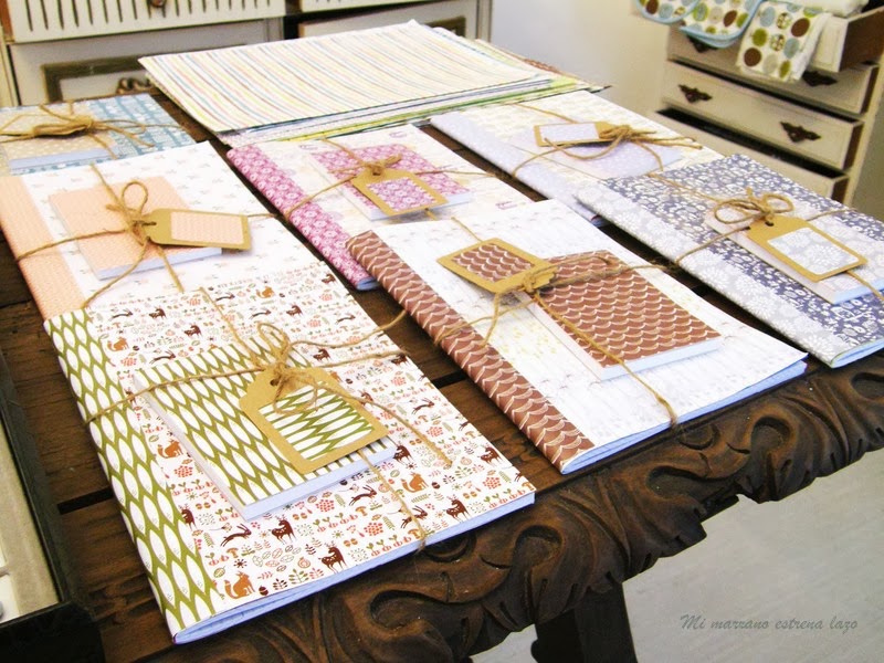 Encima de la mesa central de la tienda tengo unos cuantos packs de libretas, son una monería!!!! Las he forrado yo misma con los papeles más bonitos de la tienda.