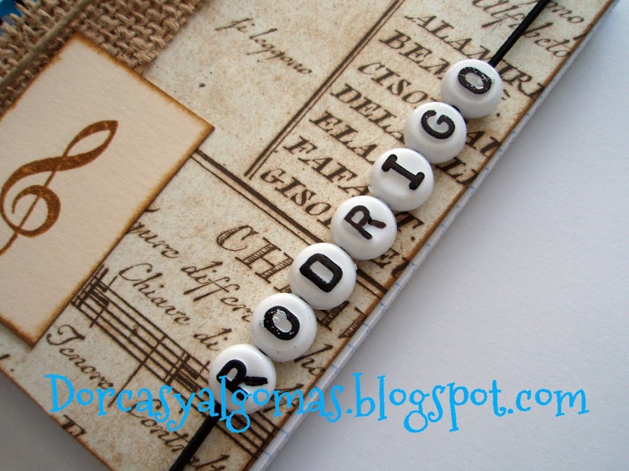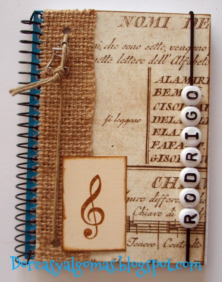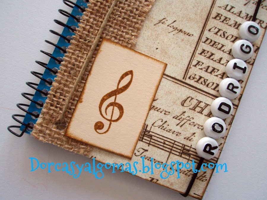 Os muestro unas pequeñas libretas con motivos musicales. Son para los niñ@s de la Escuela de Música Anna Magdalena Bach. Van personalizadas con el nombre del niño.