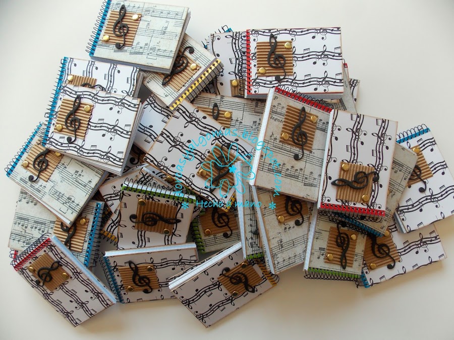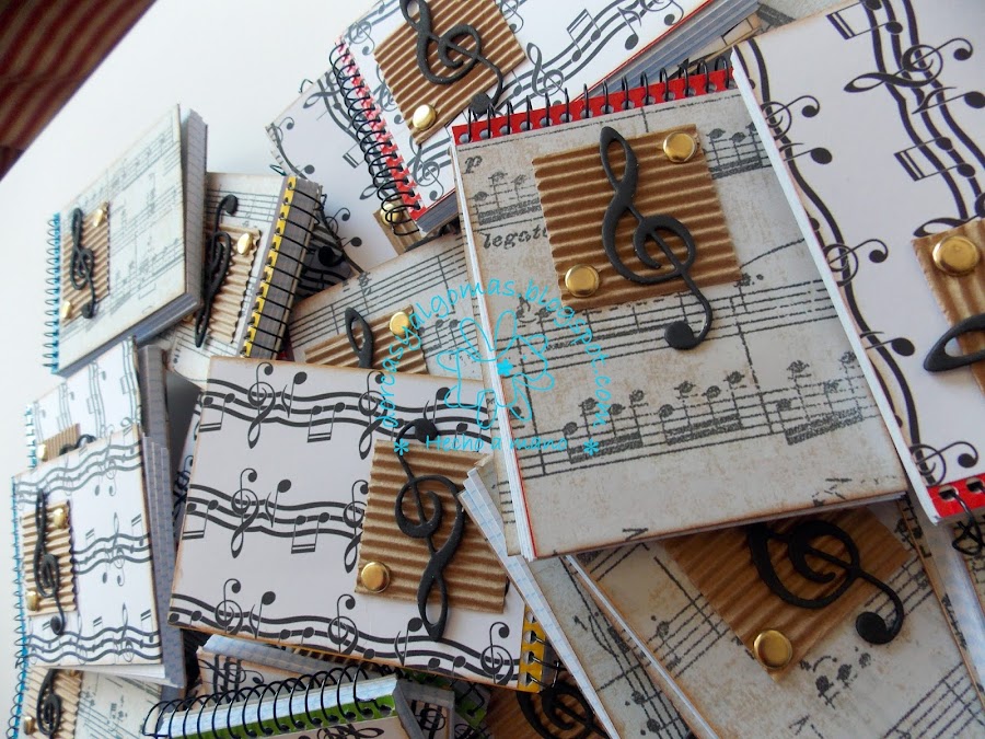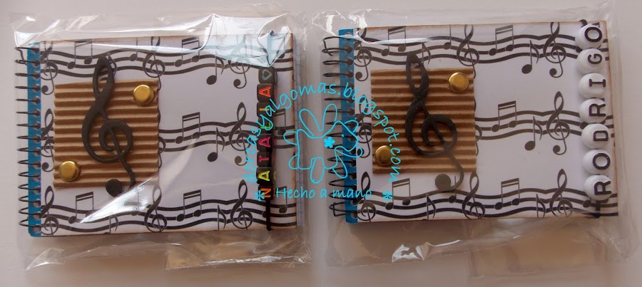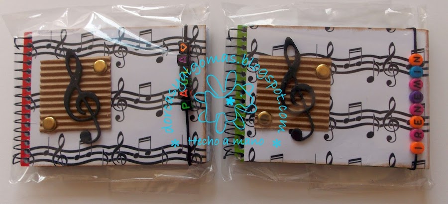 Cambio de registro con una serie de 40 libretas musicales para los niños de la Escuela de Música Anna Magdalena Bach. Van personalizadas con el nombre de cada niño con abalorios de letras.