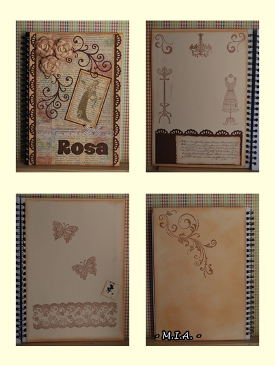 Hola a todos de nuevo!!!! estamos en mitad de semana.....hoy os traigo un poquito de scrap aunque no es mi fuerte, yo lo intento...jijiji y os quiero enseñar unas libretas que he decorado ultimamente y que a sus dueñas les han encantado creo..... Para las libretas os cuento lo que he utilizado: -libretas con tapas lisas de cartón color marrón -papeles scrap -puntillas en alguna -pegatinas y otros ...